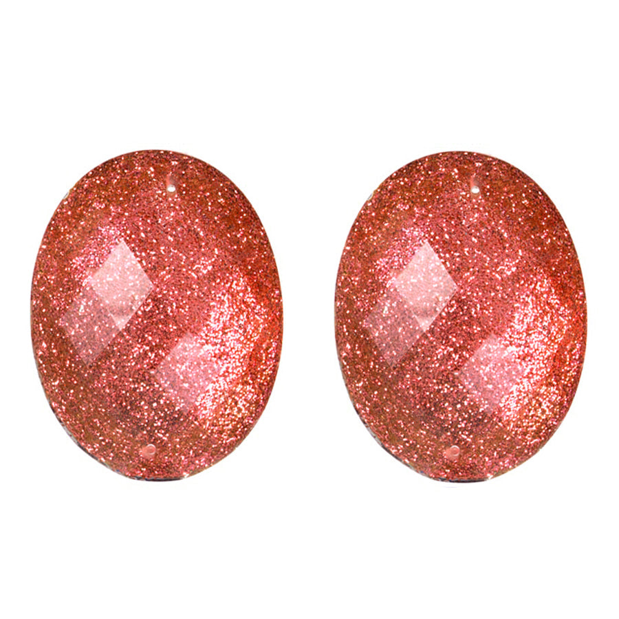Resin Sew-On Glitter Stone 30x40mm Set (2) - Pink