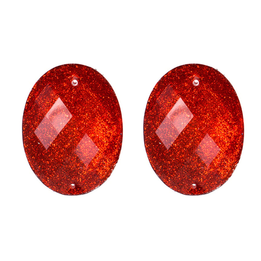 Resin Sew-On Glitter Stone 30x40mm Set (2) - Red