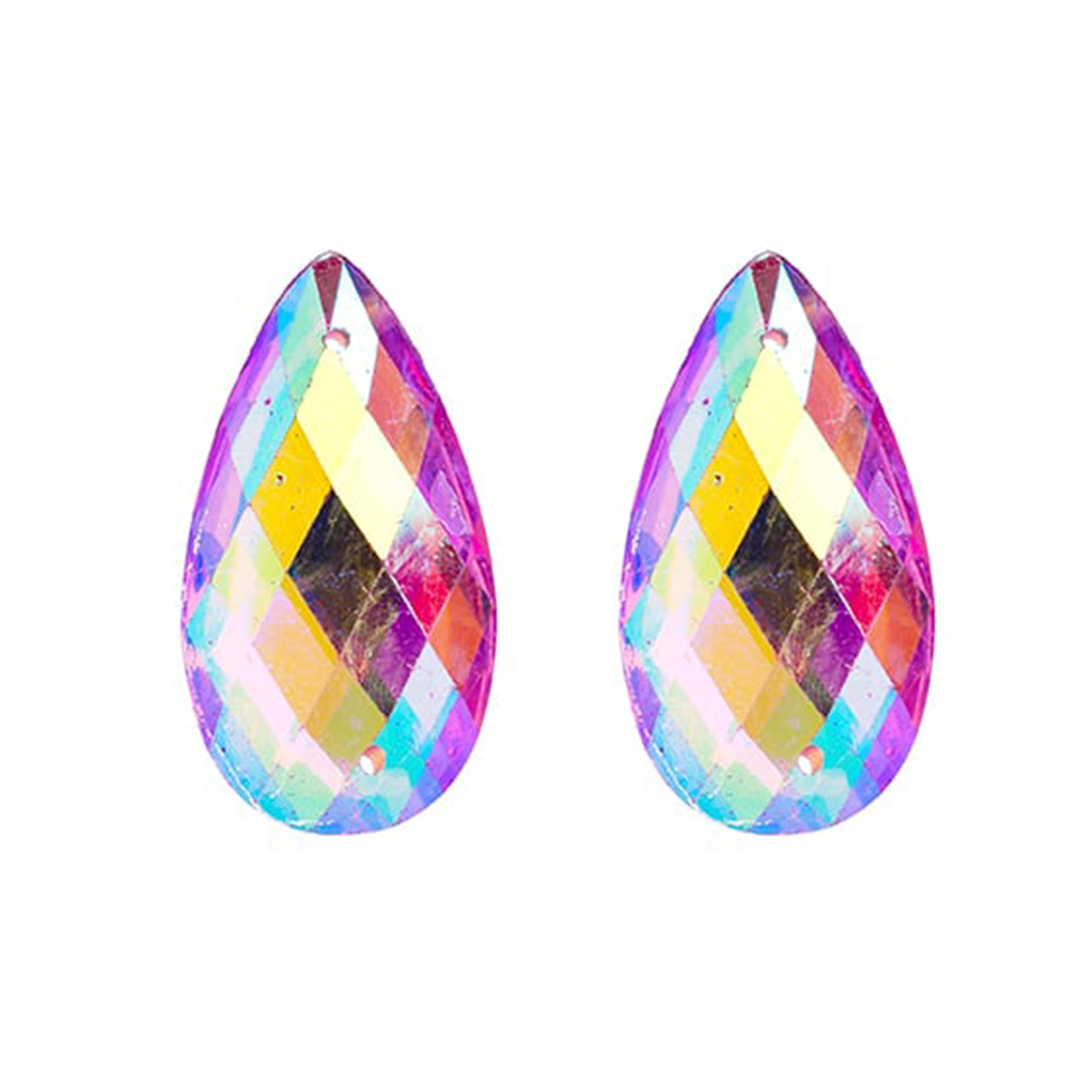 Resin Sew-On Metalico Stone Drop 16x30mm - Pink AB